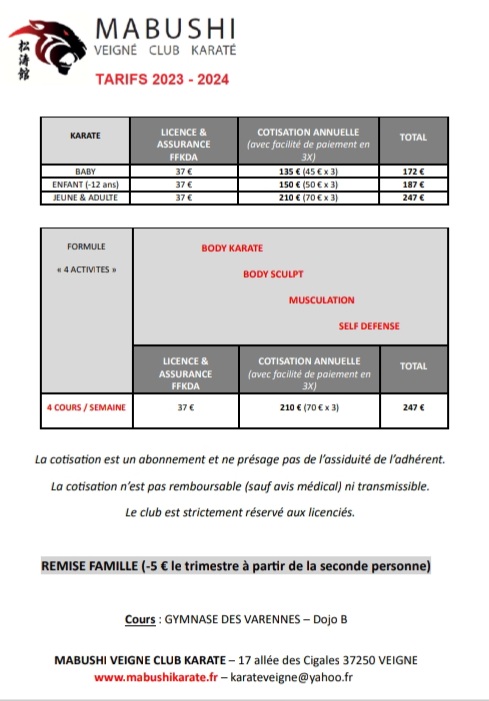 Inscription karaté
